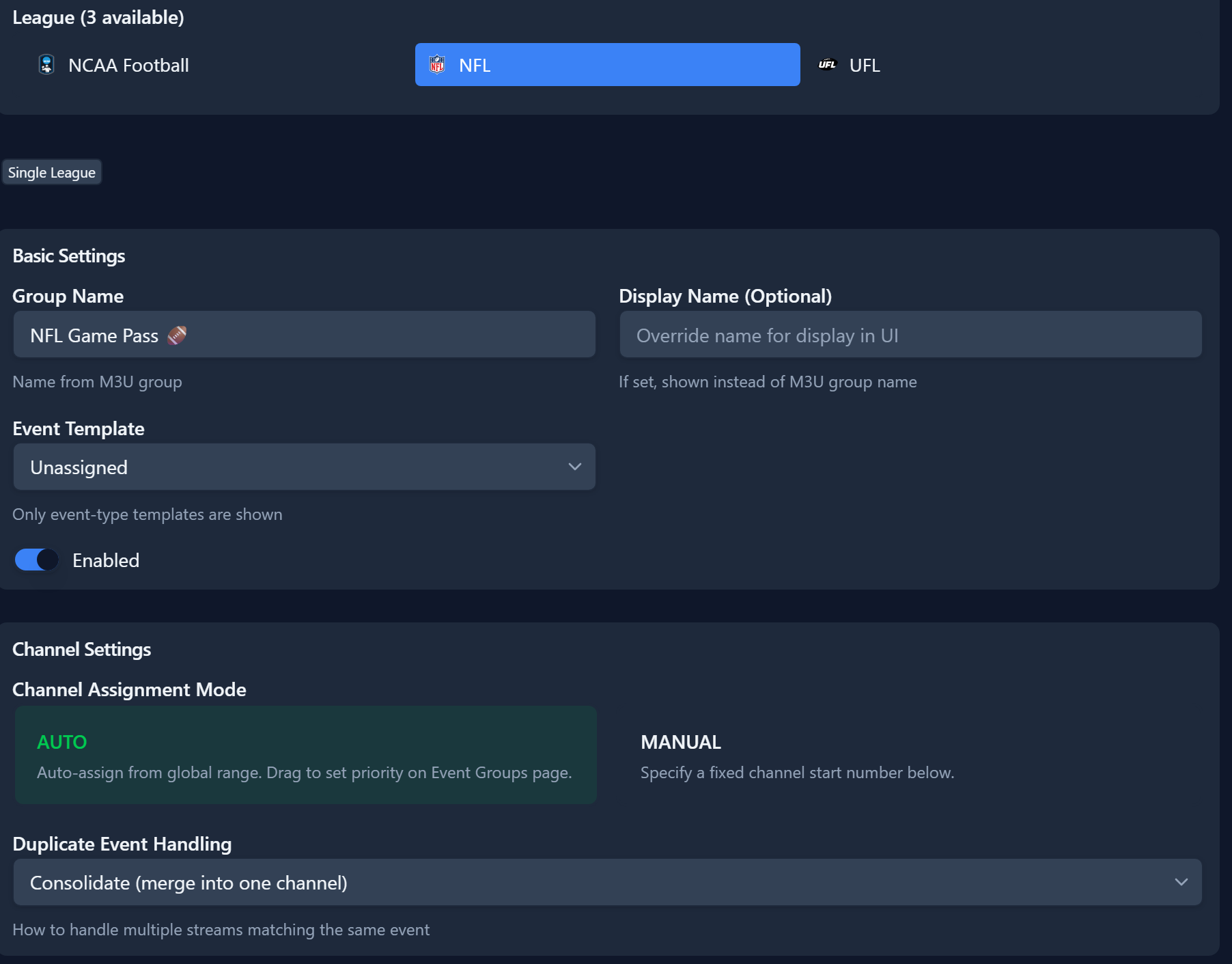 M3U's to find events and refresh EPG when updated. Once you create your