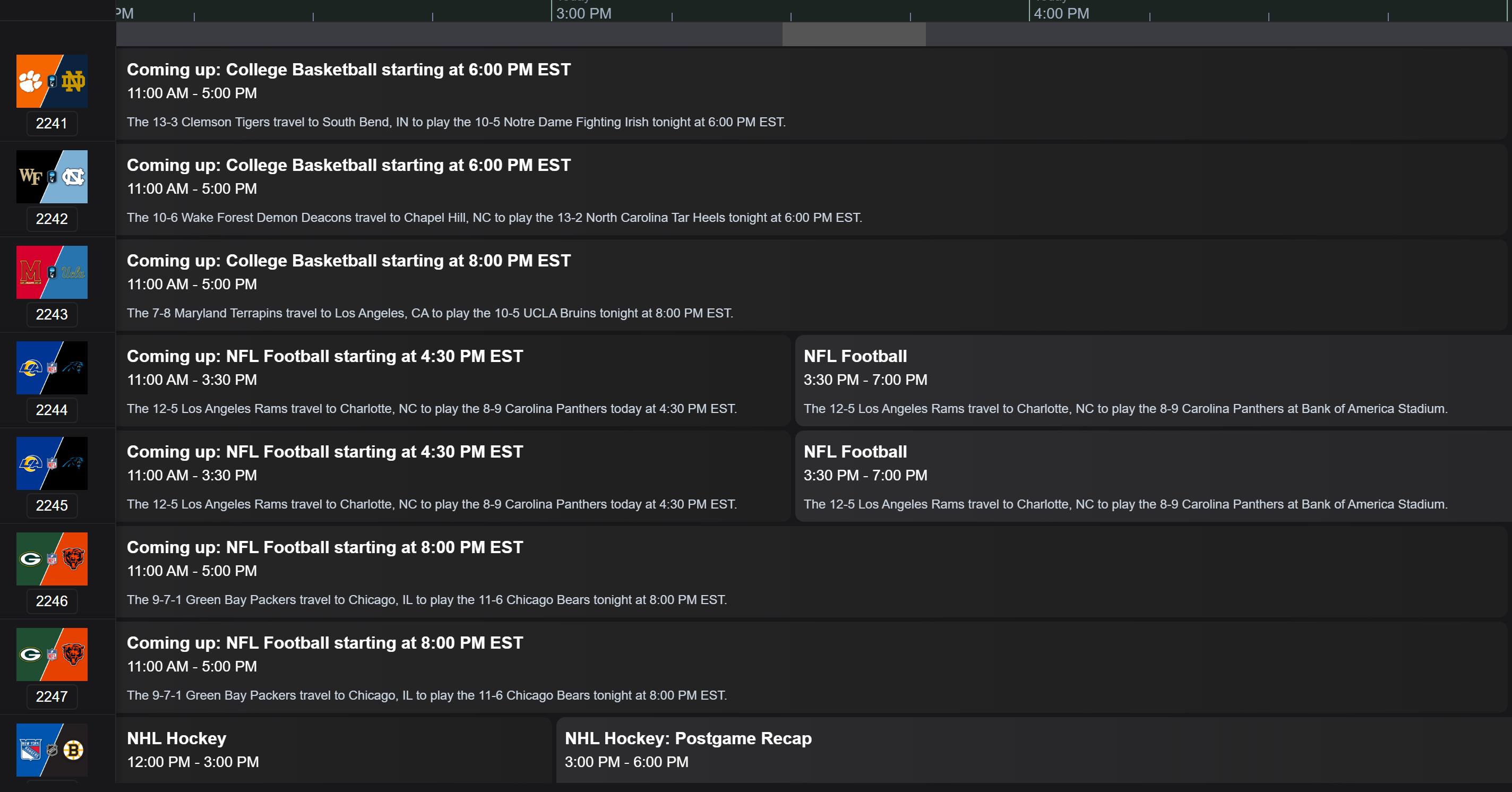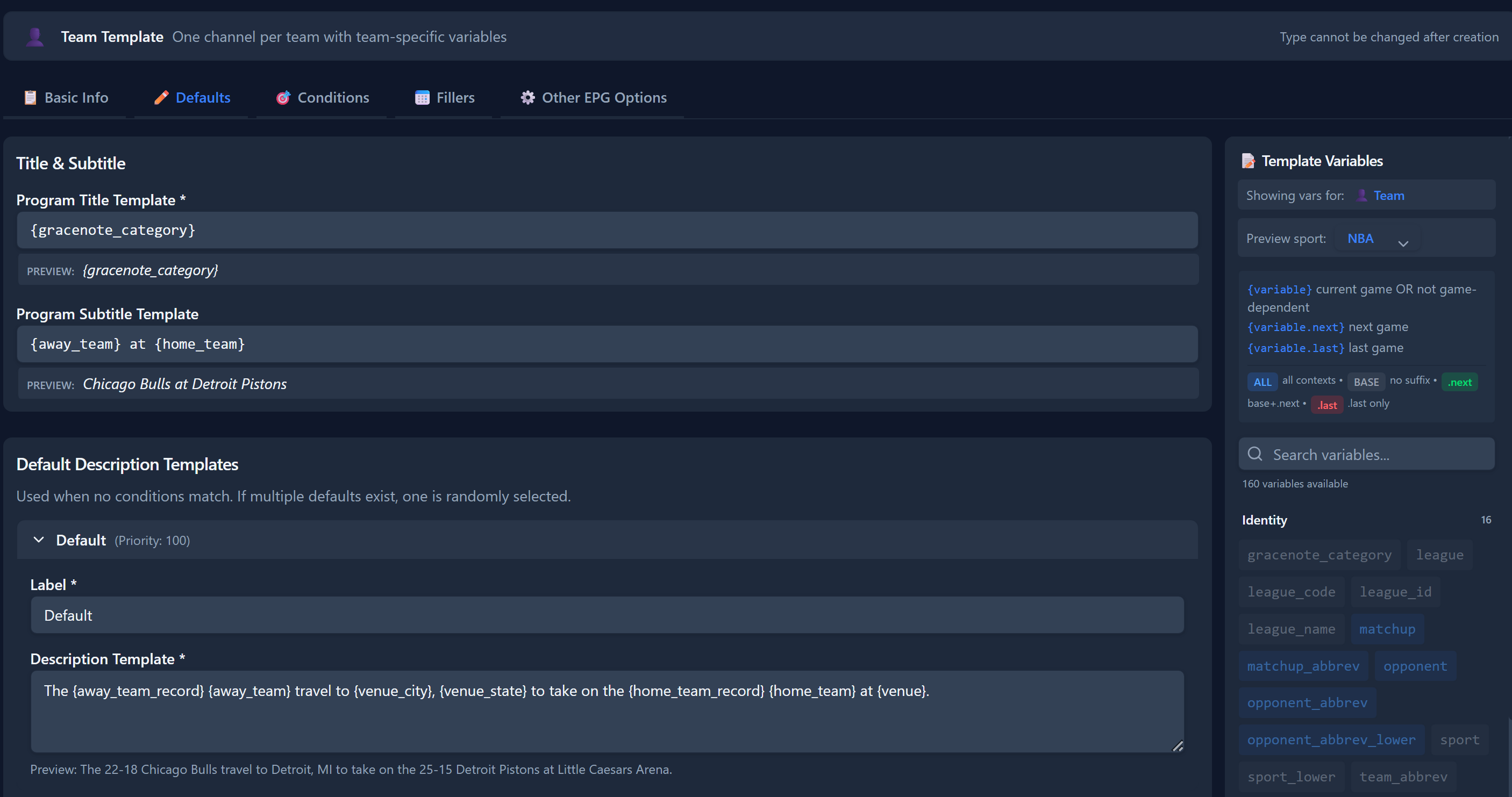 provides EPG ONLY for team channels as these don't change. Teamarr does