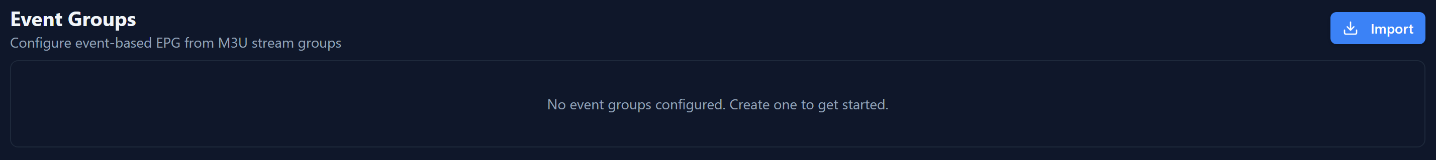 On the Event Groups page click Import to get started.
