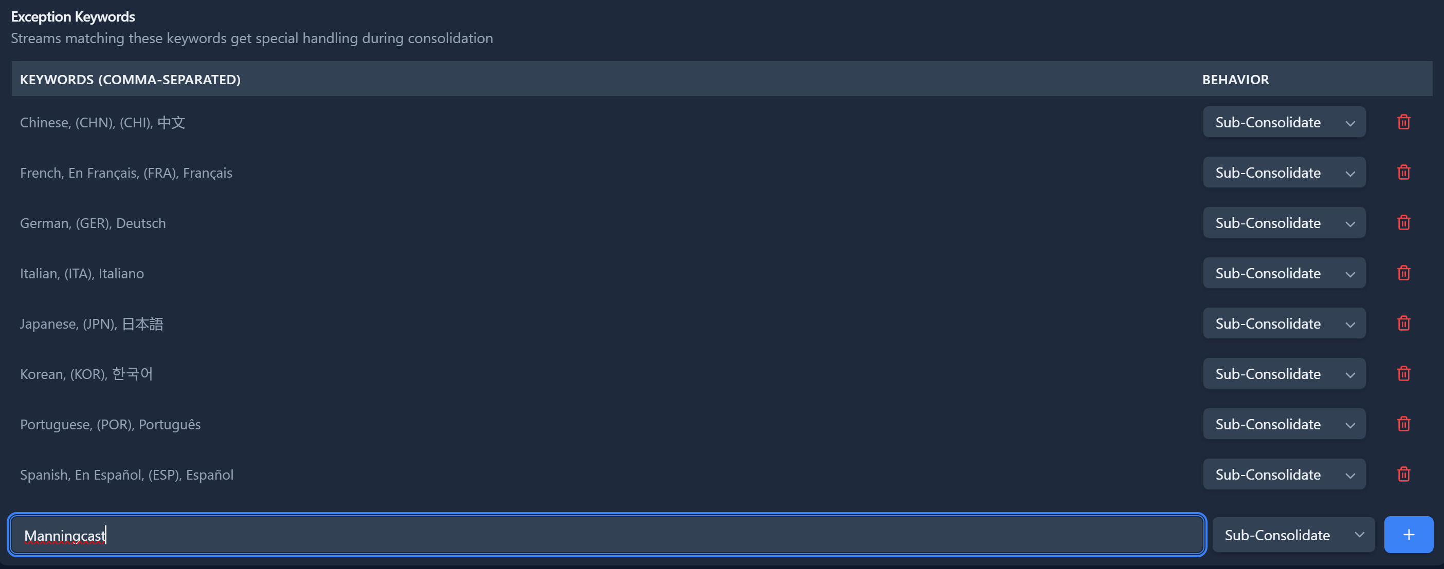 You can delete the included keyword or create additional like Manningcast or