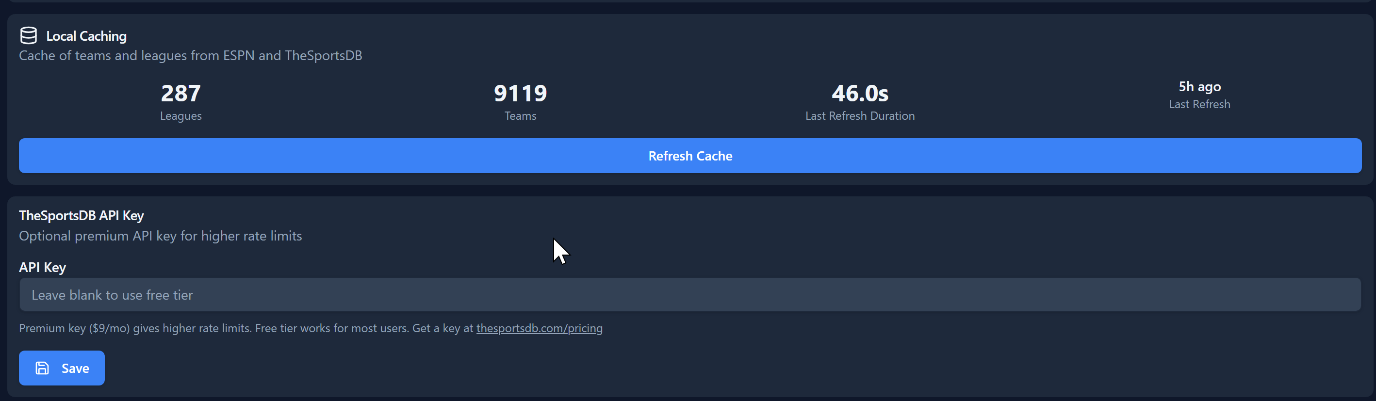 for TheSportsDB. Most users will not need this
