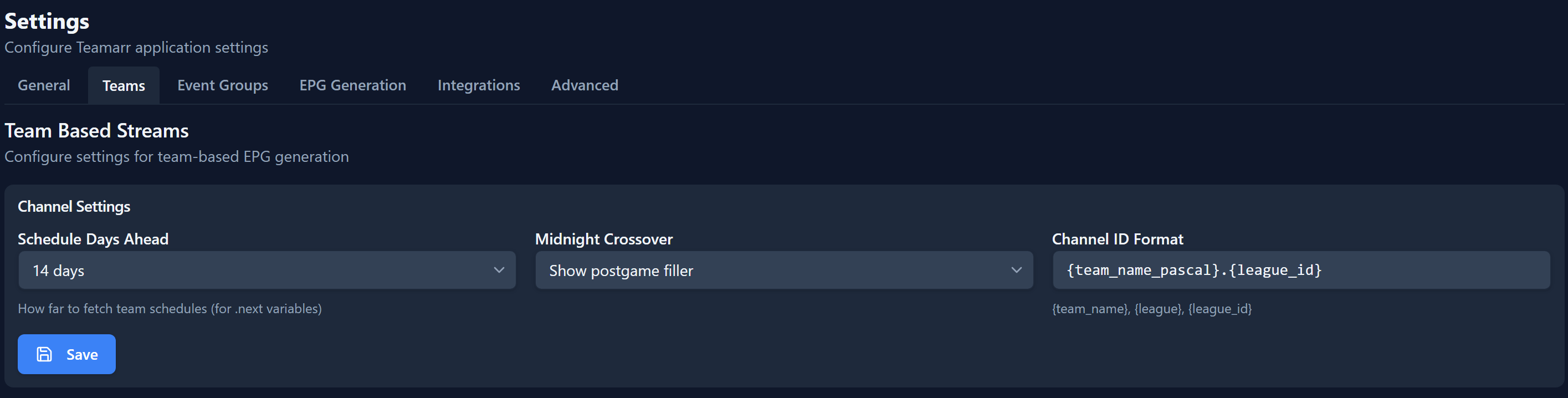 basic and global settings used in Teamarr and where we will begin