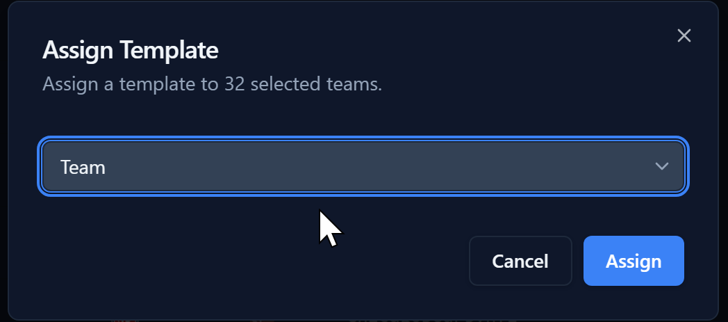 Select a Team template you created or imported earlier for your team channels and click Assign.