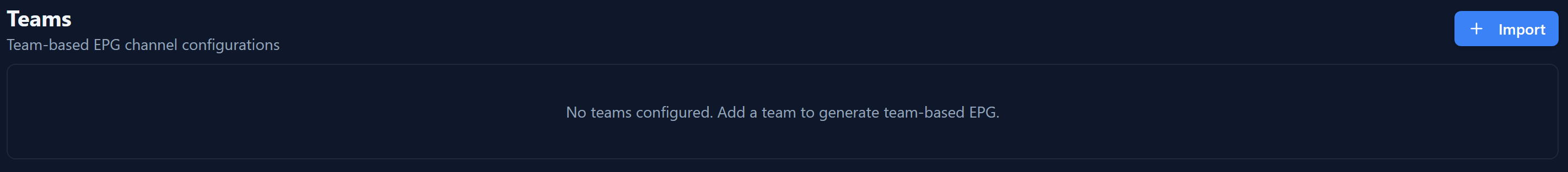 and teams to create a team EPG for.