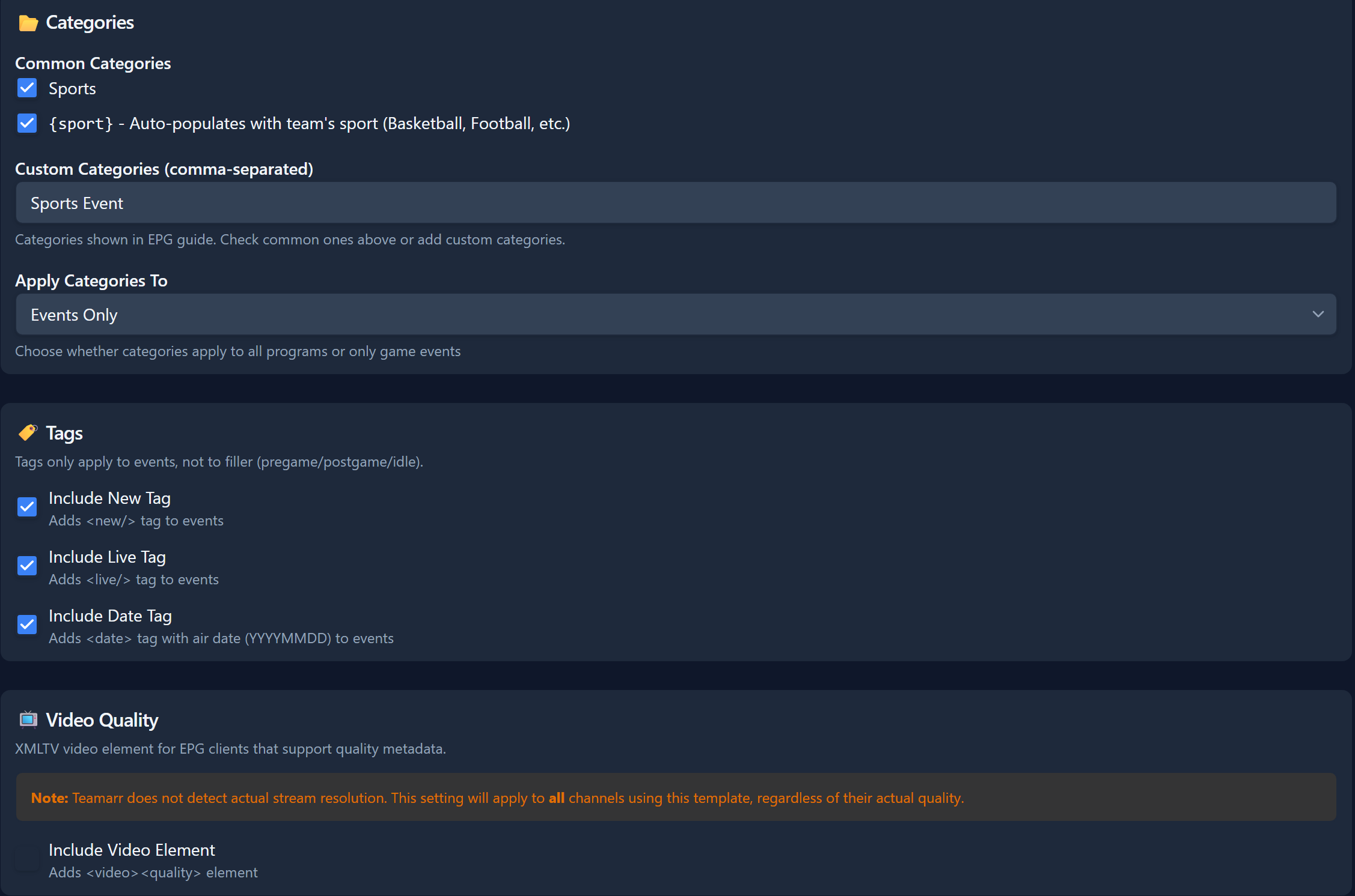 The Teamarr application does not test the video quality this is a self reported