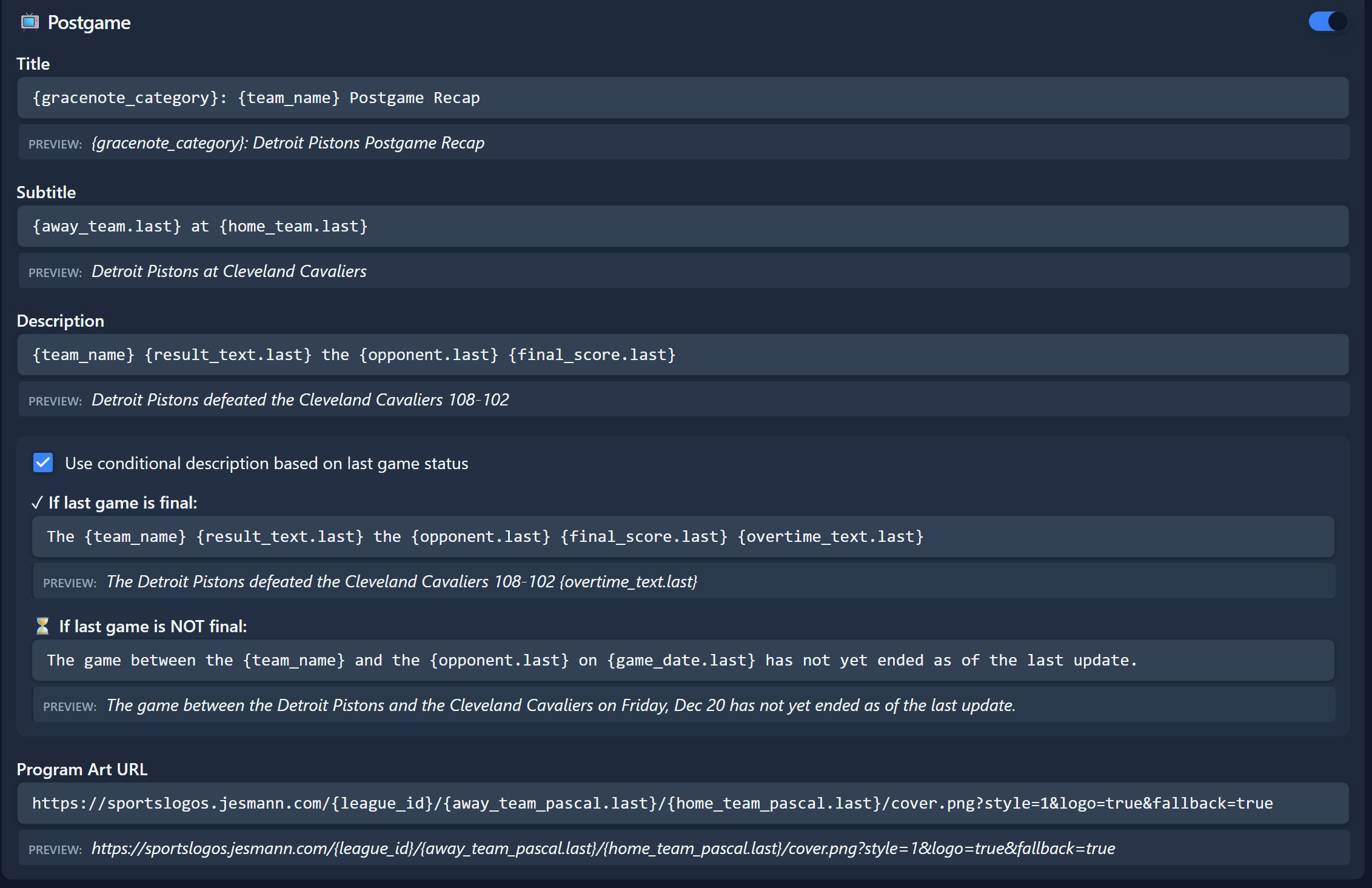 Channel ID Format - Default "{team_name_pascal}.{league_id}"